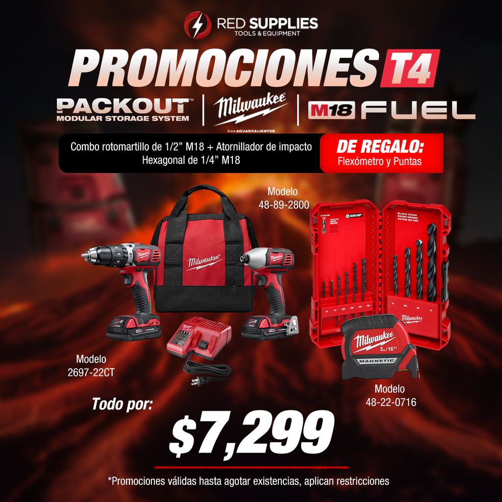 Combo Rotomartillo de 1/2" M18+ Atornillador de Impacto Hexagonal M18 + Flexómetro y puntas DE REGALO