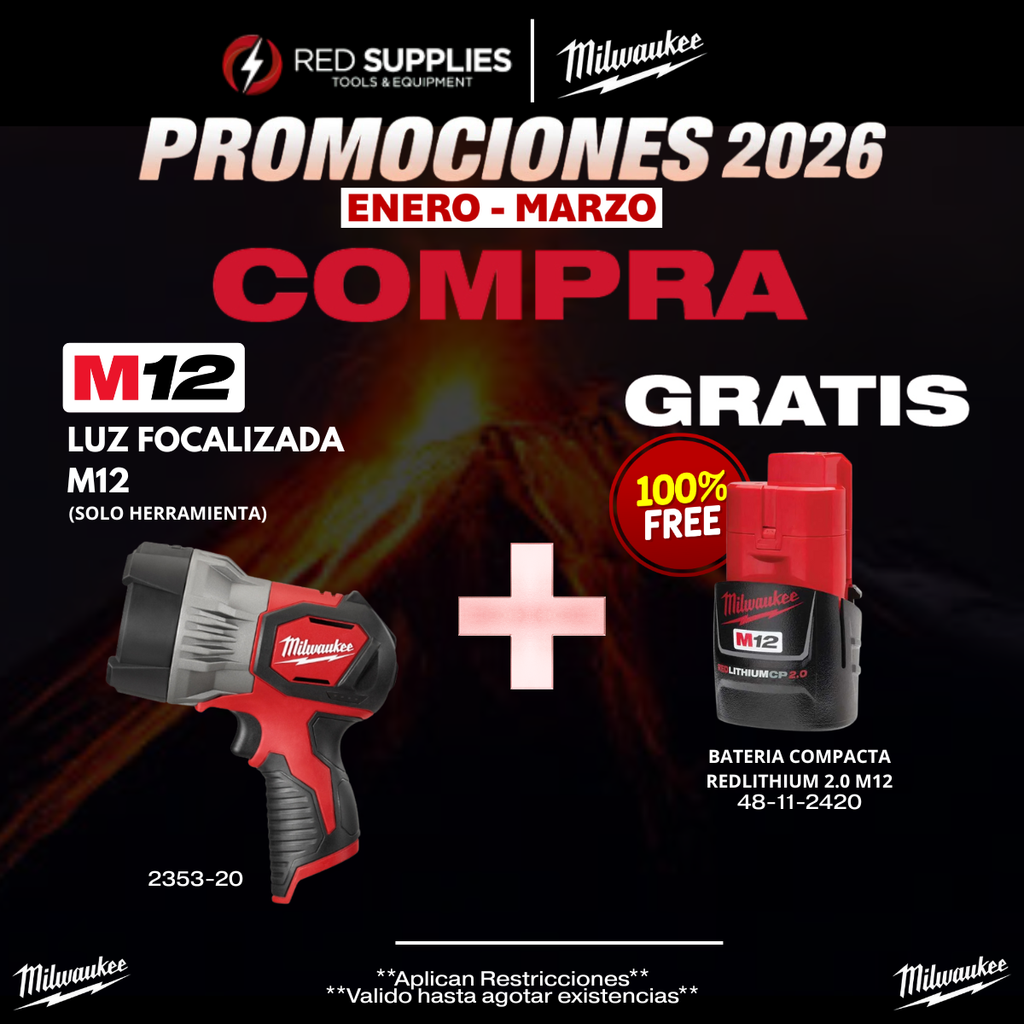 En la compra de tu LAMPARA DE LUZ FOCALIZADA te llevas TOTALMENTE DE REGALO una baterias M12 Redlithium 2.0Ah Gratis