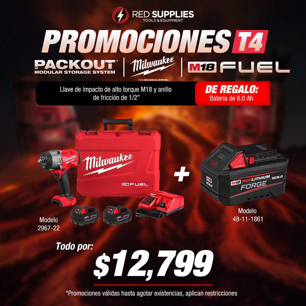 Llave de impacto de alto torque M18 de 1/2" + Bateria de 6.0 Ah DE REGALO
