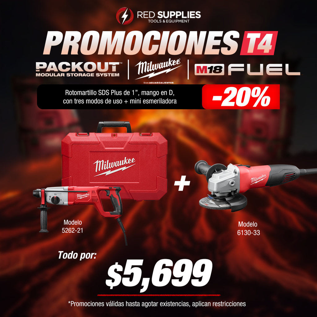 Rotomartillo SDS Plus de 1", mango en D + Mini Esmeriladora